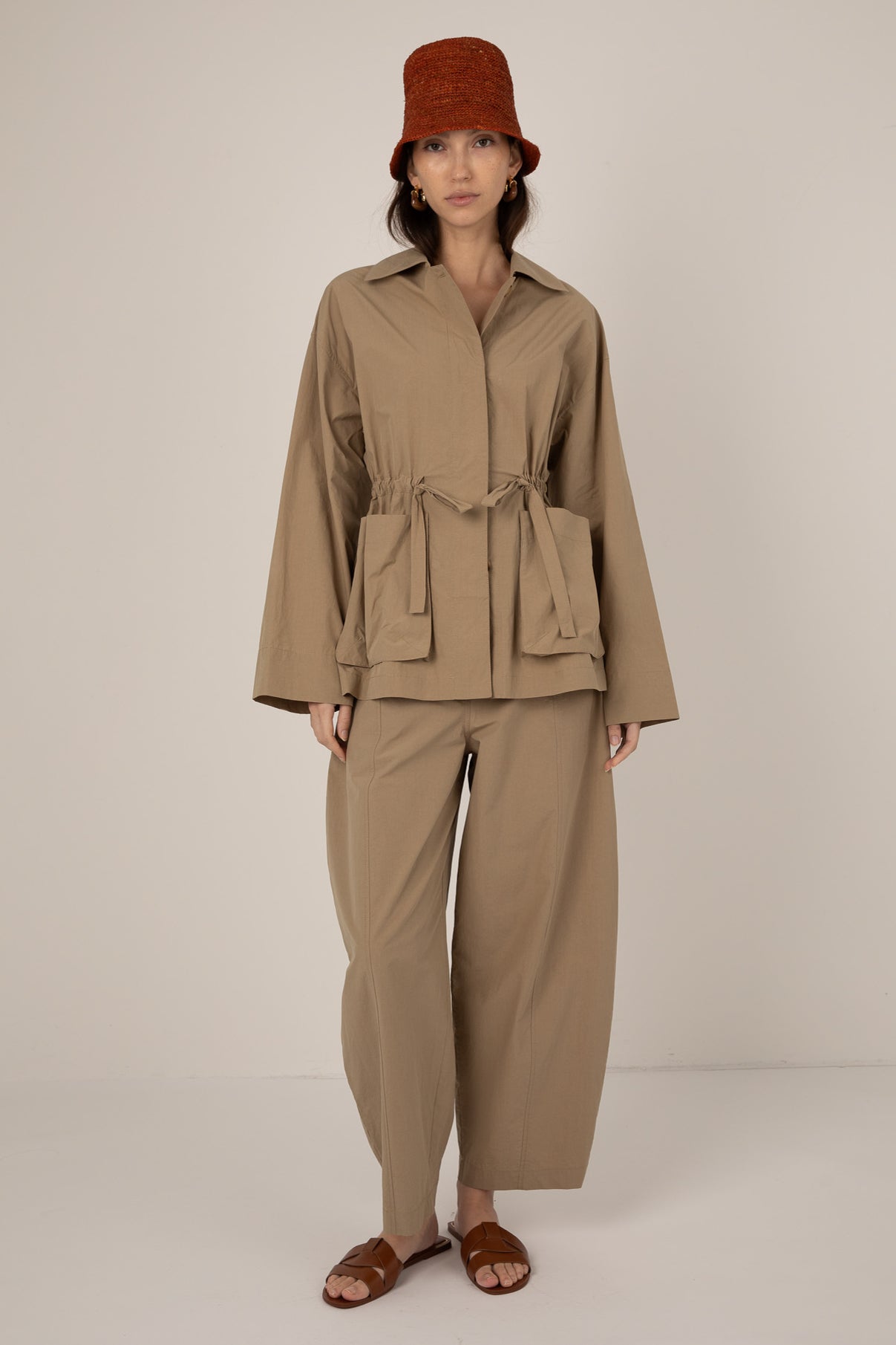 The Martina jacket is crafted in lightweight cotton poplin with a relaxed silhouette and an adjustable drawstring waist to cinch for a softly defined shape. Finished with a collar, partial button placket and open utility pockets, it offers an effortless blend of style and ease.